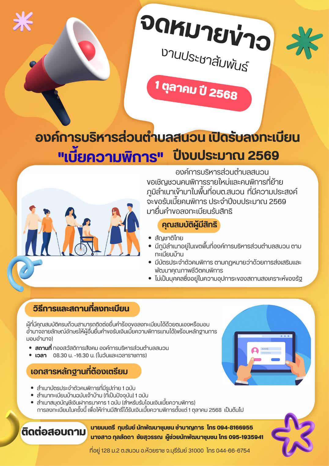 ประชาสัมพันธ์ เรื่อง การลงทะเบียนขอรับเบี้ยยังชีพผู้สูงอายุ ปีงบประมาณ พ.ศ. 2570 และเปิดรับลงทะเบียนรับเบี้ยความพิการ ปีงบประมาณ พ.ศ. 2569 ประชาสัมพันธ์ เรื่อง การลงทะเบียนขอรับเบี้ยยังชีพผู้สูงอายุ ปีงบประมาณ พ.ศ. 2570 และเปิดรับลงทะเบียนรับเบี้ยความพิการ ปีงบประมาณ พ.ศ. 2569 11 พฤศจิกายน 2025 sanuan admin Comments 0 Comment